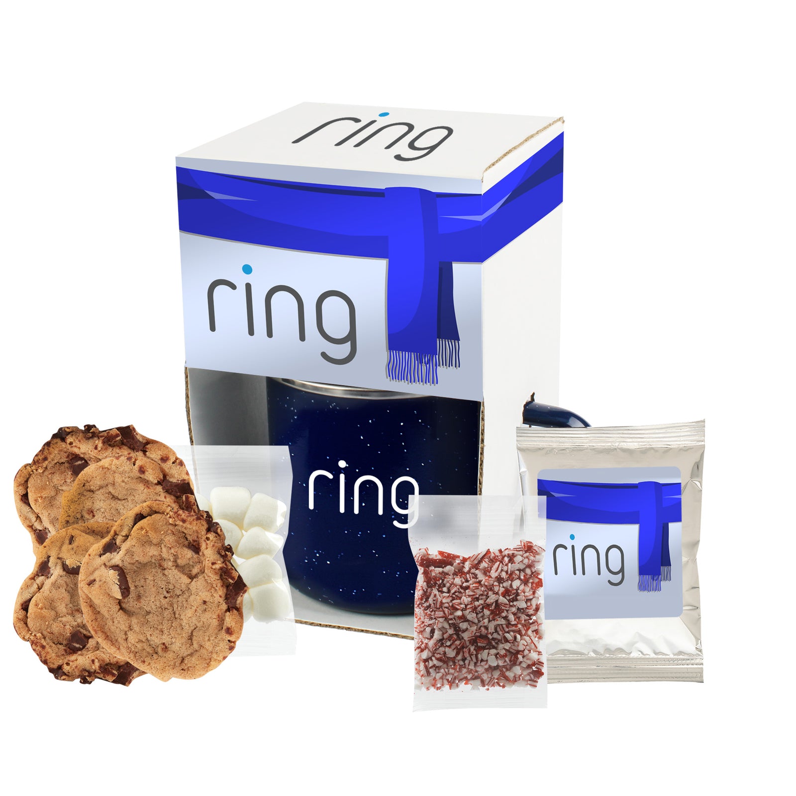 Speckled Camping Mug - 16 oz., Gourmet Cookies (4), Hot Chocolate Holiday Set