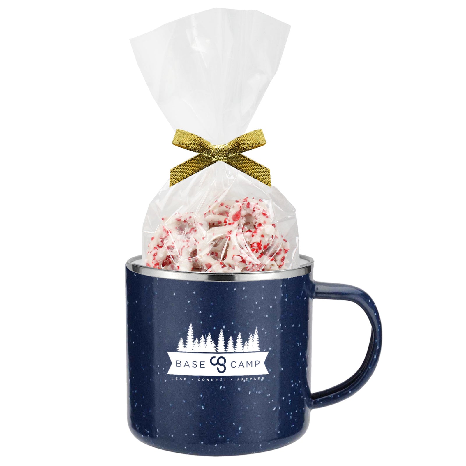 Speckled Camping Mug - 16 oz., White Chocolate Pretzels w/ Crushed Peppermint