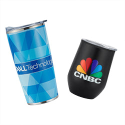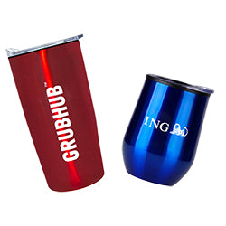 This 12 oz. Stemless Stainless Custom Wine Tumbler w/ Plastic Lining lets you take a sip of your favorite wine anywhere! It can also be used with any hot or cold drinks and kept at their temperature with its spill proof lid. This set includes Milk Chocolate Almonds (2.5 oz.).